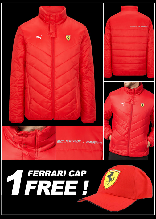 Veste homme Ferrari by Puma Matière 100% nylon - Couleur rouge - Col montant fermeture par pression Fermeture zippée - 2 poches latérales Ferrari 701210914-001