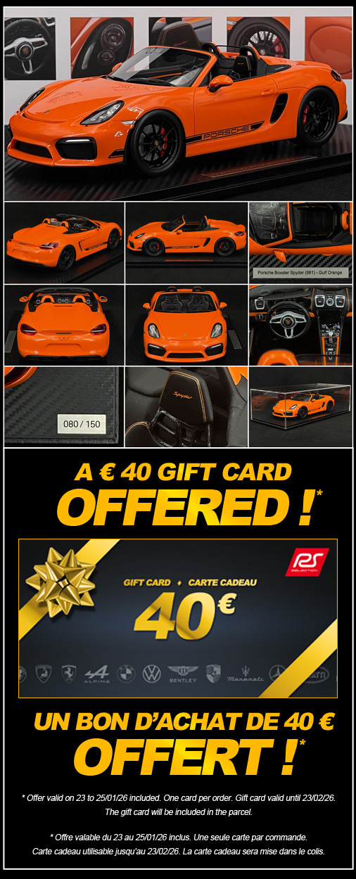Porsche Boxster Spyder "Nemo" 2016 Orange Gulf 1/18 - Spark 18RSF006 Edition limitée - 150 exemplaires numérotés 279,95 € TTC / Incl. Taxes