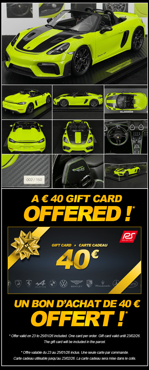 Porsche Boxster Spyder "Kiwi" 2016 Vert Lumière 1/18 - Spark 18RSF007 Edition limitée - 150 exemplaires numérotés 279,95 € TTC / Incl. Taxes