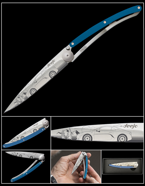 Couteau Deejo Inspiration Alpine A110 Longueur fermé 11 cm - Lame en acier inoxydable gravée au laser - Finition titane Manche en Aluminium - Longueur ouvert 20,5 cm - Poids 37g 79,95 € TTC / Incl. Taxes