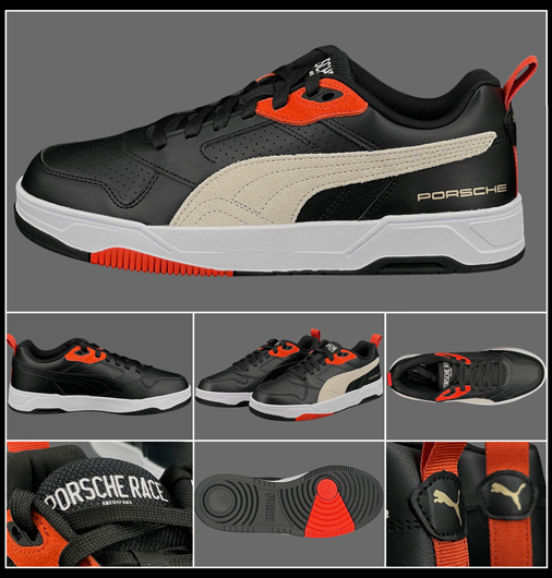 Chaussure mixte Porsche Race Americana Matière extérieur Synthétique - Doublure intérieure Textile Semelle Caoutchouc SoftFoam+ - Couleur Noir / Orange Puma 309092-01