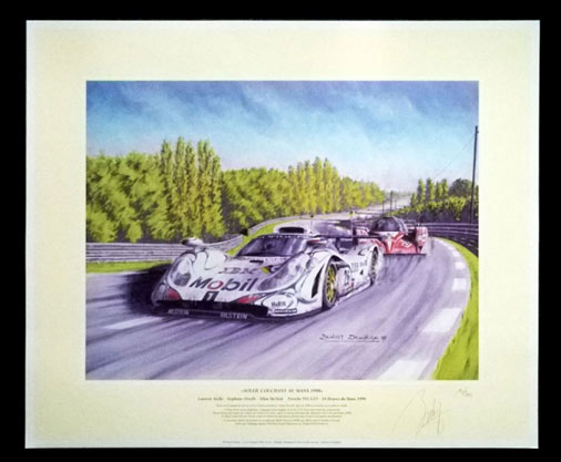 Reproduction Affiche Porsche 911 GT1 - 24h du Mans 1998 Illustration tirée d'une acrylique sur toile de Benoît Deliège Edition limitée 300 exemplaires numérotés et signés Format 50 x 60 cm 59,95 € TTC / Incl. Taxes