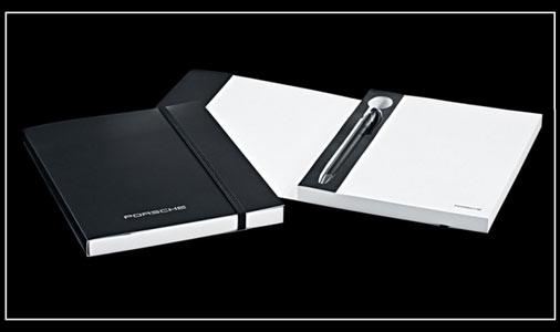 Carnet de notes Porsche avec Stylo bille intégré 100 feuilles blanches perforées griffées Porsche Papier 90 g/m² - Dimensions 15 x 19 cm Porsche Design WAP0920050D Fabriqué en Allemagne 19,95 € TTC / Incl. Taxes