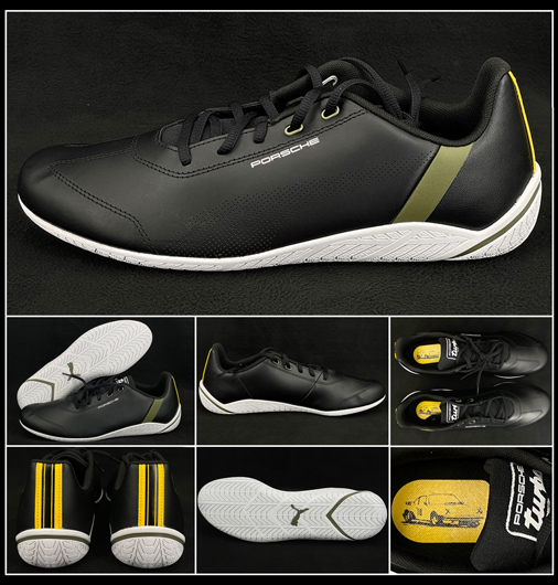 Chaussures homme Porsche Turbo by Puma Matière : Simili-cuir - Semelle caoutchouc Couleur Noir / Vert / Jaune Puma 307022-01 89,95 € TTC / Incl. Taxes