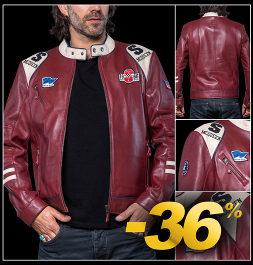 Veste en Cuir homme Steve McQueen Matière 100% cuir - Doublure 100% Coton - Couleur Rouge foncé - Col droit Fermeture zippée - 3 Poches zippées - 2 poches intérieures Classic Legend Motors 27493-4010