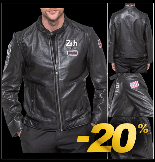 Veste en Cuir homme 24h Le Mans - Tailles M / L seulement Matière 100% cuir de mouton - Doublure 100% polyester - Couleur Noir - Col pressionné Fermeture zippée - 2 Poches latérales zippées - 1 poche sur la manche Classic Legend Motors 27642-1000