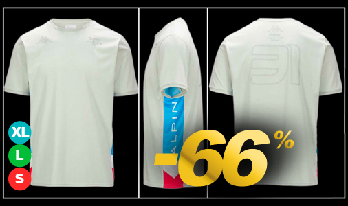 T-shirt homme Esteban Ocon Alpine F1 - Tailles S / L / XL seulement Matière 60% Coton / 40% Polyester - Couleur Gris Kappa 361L3PW-A08