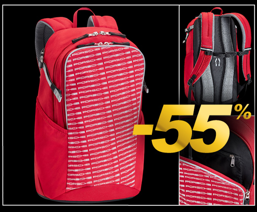 Sac à dos Porsche Compartiment principal spacieux - Poche avant zippée - Poches élastique sur les côtés Matière 100% Polyester - Couleur Rouge / Noir - Dimensions 38 x 30 x 15 cm Bretelles et dos renforcés mousse micro perforée épaisse Porsche WAP0350010N0WW