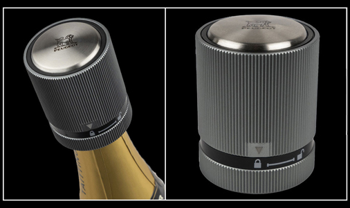 Bouchon Peugeot pour Vins Effervescents Compatible avec tous les types de bouteilles, y compris les magnums Système de valve pour une fermeture totalement hermétique Coque en aluminium strié - Bouchon en acier ultra-résistant 24,95 € TTC / Incl. Taxes