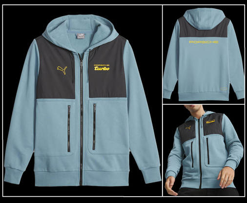 Veste homme Porsche Turbo by Puma Matière 66% coton / 34% polyester - Couleur Bleu - Capuche réglable par cordon 2 poches latérales zippées - Fermeture principale zippée Puma 621023-02