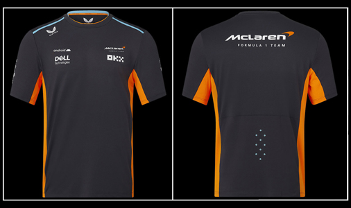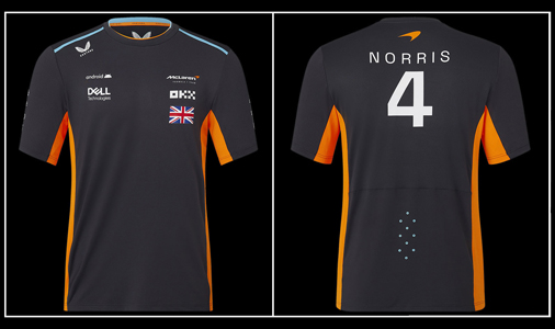 T-shirt homme Lando Norris McLaren F1 Matière 88% Polyester / 12% Elasthane - Couleur Gris Phantom Tissu Léger et respirant - Col côtelé McLaren TM2608 64,95 € TTC / Incl. Taxes