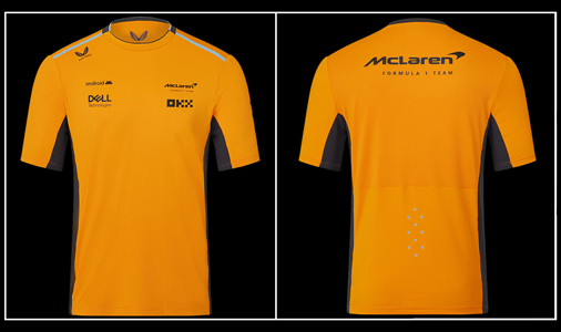 T-shirt homme Lando Norris McLaren F1 Matière 88% Polyester / 12% Elasthane - Couleur Orange Papaye Tissu Léger et respirant - Col côtelé McLaren TM2608 64,95 € TTC / Incl. Taxes