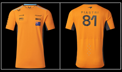 T-shirt homme Oscar Piastri McLaren F1 Matière 88% Polyester / 12% Elasthane - Couleur Orange Papaye Tissu Léger et respirant - Col côtelé McLaren TM2609 64,95 € TTC / Incl. Taxes