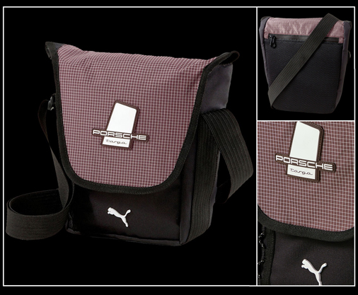 Sacoche à Bandouilère Porsche Targa by Puma Compartiment Portefeuille / Téléphone - Poches intérieur / extérieur zippées Bandoulière ajustable - Matière 23 % Polyester / 77% Polyamide Couleur noir / Motif imprimé sur le rabat - Dimensions 27 x 17 x 5 cm Puma 078432-01 34,95 € TTC / Incl. Taxes