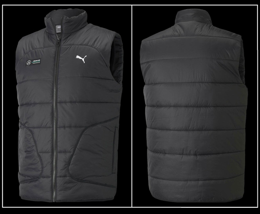 Veste sans manche homme Mercedes AMG Petronas by Puma Matière 100% Nylon Polyester - Couleur Noir Fermeture par zip / 2 poches zippées sur le devant Puma 532347-02