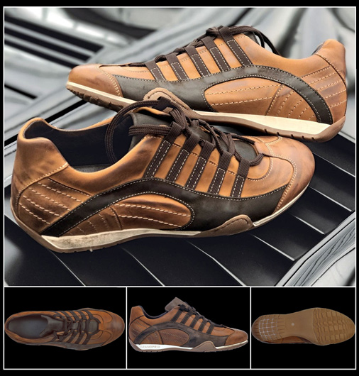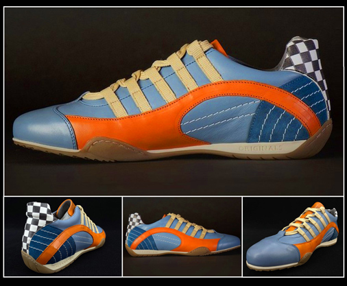 Chaussure style pilote pour homme Matière 100% cuir / semelle caoutchouc Couleur bleu Gulf / orange 179 € TTC / Incl. Taxes