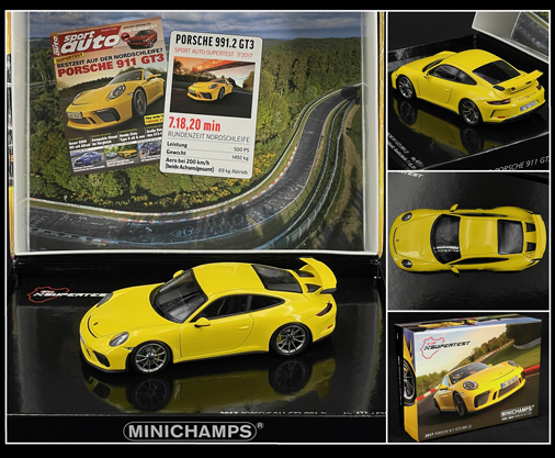 Porsche 911 GT3 Phase II 2017 - Sport Auto Supertest Edition Jaune Racing 1/43 - Minichamps 410066029 Edition Limitée - 525 exemplaires numérotés 69,95 € TTC / Incl. Taxes
