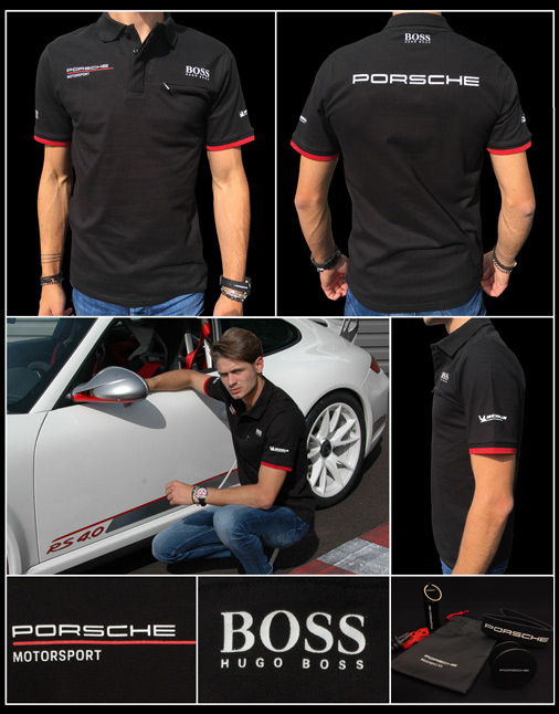 Polo homme Porsche Motorsport Hugo Boss Couleur noir / détails rouge / blanc - Matière 95 % coton / 5 % elasthane Tissu technique élastique confortable et respirant Poche poitrine avec fermeture par zip Avec kit d'accessoires Porsche Motorsport Porsche Design WAP432LMS 79,95 € TTC / Incl. Taxes
