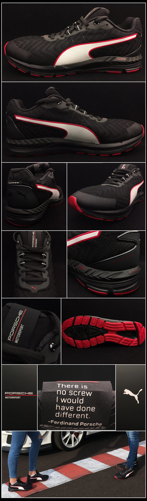 Chaussures mixte Porsche Motorsport Puma Chaussure de course Puma Ignite Speed 600 - Couleur noir / blanc / rouge En maille tricotée Airmesh sans couture légère, respirante et confortable Technologie Everfit + pour sécuriser le pied sans gêner le mouvement naturel Doublure spéciale Bootie Fit pour un un ajustement personnalisé Semelle typée gomme EverTrack + adhérence et traction Zone de propulsion pour un retour d'énergie direct Porsche Design WAP439LMS 139,95 € TTC / Incl. Taxes