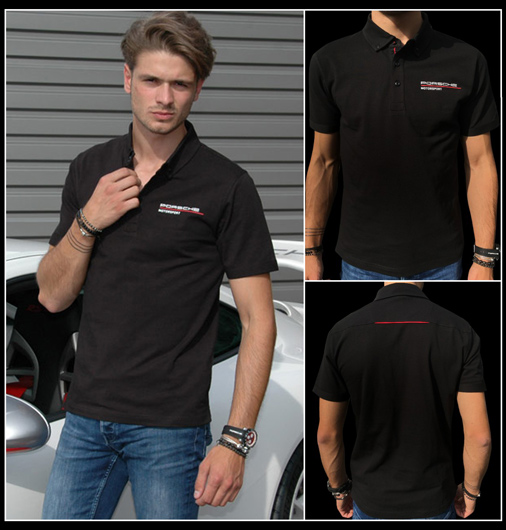 Polo homme Porsche Motorsport Couleur noir / détails rouge / blanc - Matière 95 % coton / 5 % elasthane Tissu technique élastique confortable et respirant Porsche Design WAP802LFMS 59,95 € TTC / Incl. Taxes