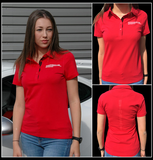 Polo femme Porsche Motorsport Couleur rouge / détails blanc / noir - Matière 95 % coton / 5 % elasthane Tissu technique élastique confortable et respirant Porsche Design WAP804LFMS 59,95 € TTC / Incl. Taxes
