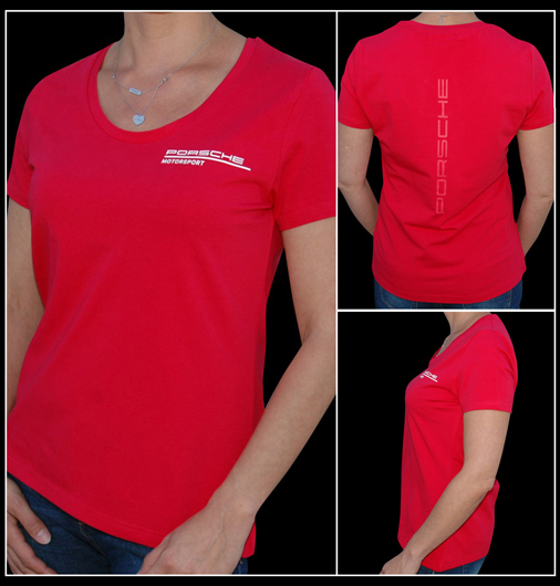 T-shirt femme Porsche Motorsport Couleur rouge / détails noir / blanc - Matière 95 % coton / 5 % elasthane Col échancré - Tissu élastique confortable et respirant Porsche Design WAP810LFMS 39,95 € TTC / Incl. Taxes