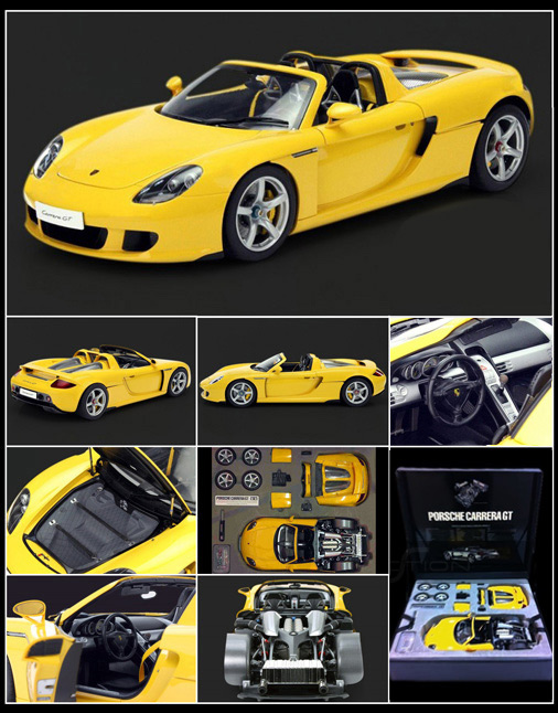 Carrera GT Jaune 1/12 - Tamiya 23207 Ouverture capot, coffre et portes - Intérieur authentique - Compartiment moteur détaillé Roues avant tournantes - Suspension entièrement fonctionnelle Présenté en malette avec un set d'outils de précision