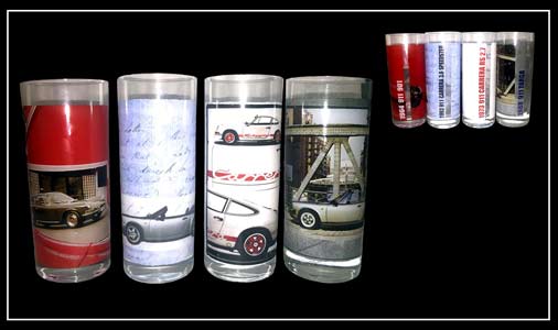 Set de 4 verres Porsche 911 Long Drink Dessins de différentes Porsche 911 Classiques Hauteur 17 cm - Diamètre 6,8 cm Livrée en boite carton blanche neutre