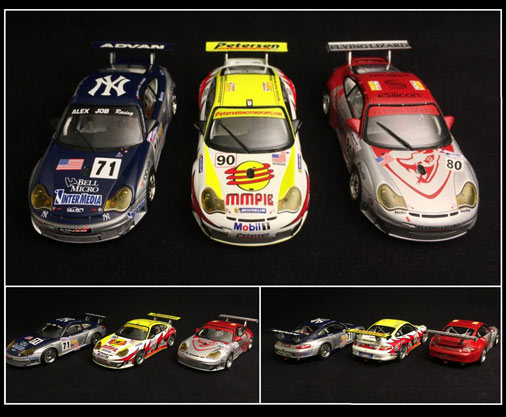 Trio 996 GT3 RSR - 24h du Mans 2005 996 GT3 RSR n° 71 + 996 GT3 RSR n°90 + 996 GT3 RSR n° 80 1/43 - Minichamps 400056471 + 400056490 + 400056480 Edition limitée