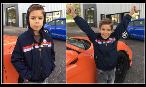 Polo Enfant Gulf Racing Couleur bleu marine / manches orange Matière 65% coton / 30% polyester / 5% spandex