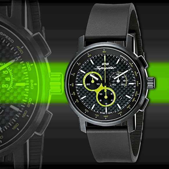 Montre Chronographe Porsche 918 Spyder Mouvement Suisse Ronda avec 13 rubis Bracelet en caoutchouc noir avec boucle déployable Vitre antireflets en saphir très résistant Boitier en aluminium - Etanche à 100 mètres Garantie 2 ans - Fabriquée en Suisse Porsche Design WAP0700810E