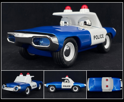 Voiture de Course Vintage - Police Bleu Composition Plastique ABS avec revêtement UV haute brillance - Poli à la main avec soin LxHxP : 24,5 x 9,6 x 10,5 cm - Playforever PLMAVM103 69,95 € TTC / Incl. Taxes