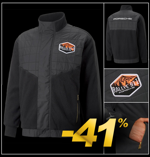 Veste homme Porsche 911 Rallye - Tailles XS / S seulement 2 poches zippées - Matière 100% polyester - Alliance bi-matière Double fermeture principale par zip et par pression Couleur Noir - Puma 534820-01