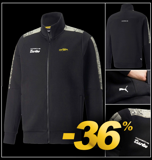 Veste homme Porsche Turbo - Tailles S / M seulement Matière 77% Coton / 33% Polyester - Couleur Noir / Jaune Fermeture zippée - 2 poches latérales Puma 534837-01
