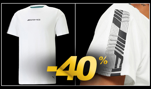 T-shirt homme Mercedes-AMG F1 - Tailles XS / M / XL seulement Matière 100% coton - Bords cotes 70% coton / 30% polyester - Couleur Blanc Puma 538459-03