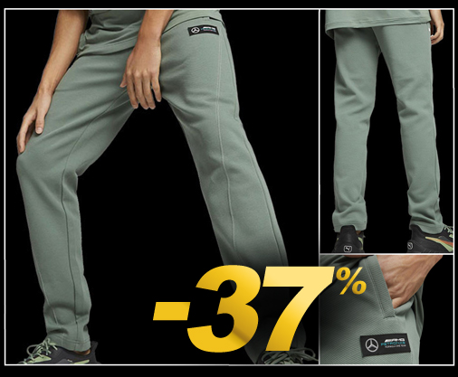 Pantalon homme Mercedes-AMG F1 Matière 72% coton / 28% polyester - Couleur Vert Eucalyptus - 2 poches latérales Puma 621151-07