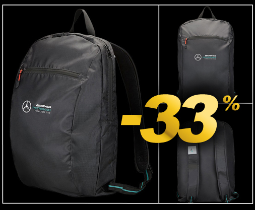 Sac à Dos Mercedes-AMG F1 Grand compartiment principal par fermeture zip - Petite poche sur l'avant - Couleur noir Dimensions 40 x 23 x 15 cm - Bretelles réglables - Matière 100% polyester Mercedes 701202211-001