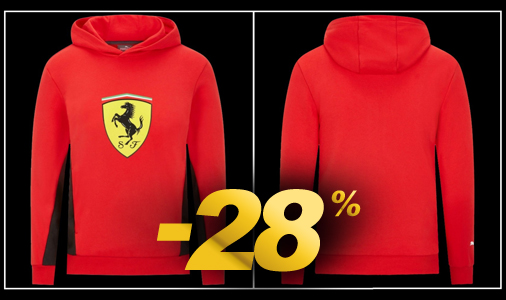 Hoodie enfant Ferrari Couleur Rouge / Noir - Matière 100% polyester - Taille et poignets côtelés Poches latérales dissimulées à la couture Ferrari 701210922-001