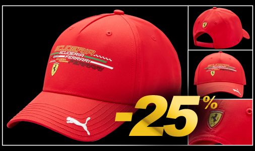 Casquette Ferrari F1 Matière 100% polyester - Taille réglable - Couleur Rouge Ferrari 701219328-001
