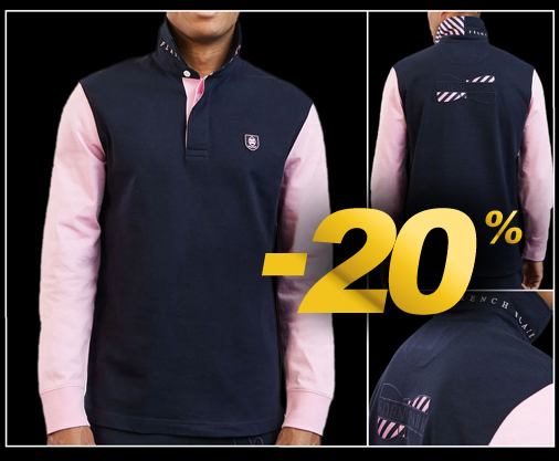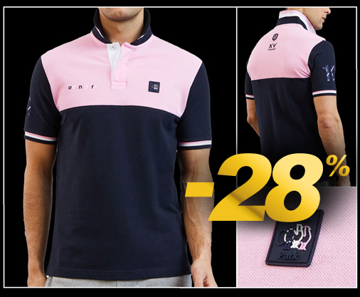 Polo homme Eden Park XV de France n°10 Matière 100% Coton - Couleur Gris Foncé / Rose - Tissage fin de haute qualité Broderie 10 avec application de tissu cravate sur la manche droite Eden Park H23MAIPC0006