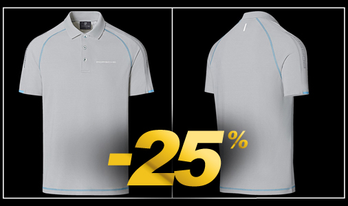 Polo homme Porsche Sport - Tailles XS / S seulement Matière anti-humidité / séchage rapide - Tissu piqué extensible léger et respirant Couleur Gris clair / détails Bleu clair - Matière 100% Polyester Porsche WAP534M0SP