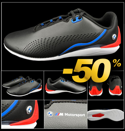 Chaussure homme BMW Motorsport Matière Simili Cuir - Doublure tissu d’excellente qualité Couleur Noir / Rouge - Semelle Drift Cat Decima Puma 307304-04