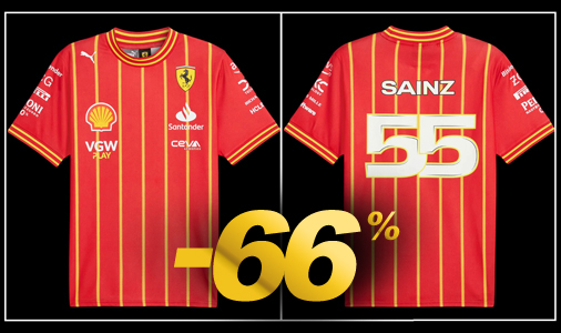 T-shirt homme Carlos Sainz Ferrari F1 Matière 100% polyester - Couleur Rouge / Jaune Ferrari 701227995-002