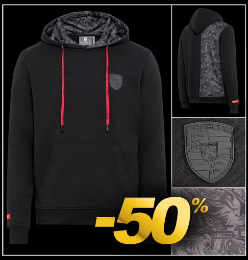 Hoodie mixte Porsche Prototype Matière 90% Coton / 10% Polyester - Couleur Noir - Capuche réglable Poche kangourou - Taille et manches élastiquées Porsche WAP195RPAP