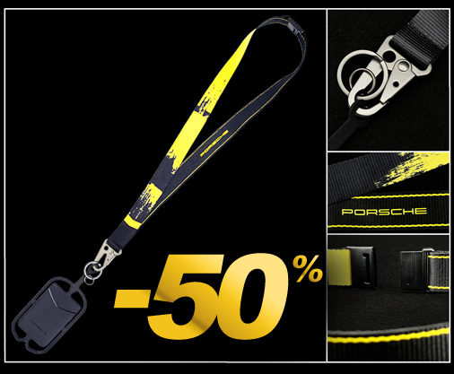 Porte-clés Tour de cou Porsche GT4 Clubsport Couleur Noir / Jaune - Matière 100% Polyester / Anneau métal Porte carte en silicone - Anneau détachable Porsche WAP3400020LCLS
