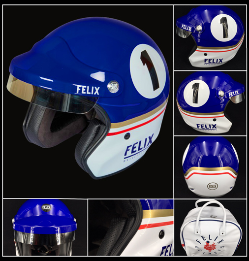 Casque Monte Carlo n°89 Couleur bleu de France / bandes blanches - Matière Coque Fibre de verre Habillage intérieur éponge bouclette - Visière démontable avec pare-soleil fixe Sac de transport simili cuir blanc, intérieur doublé en coton 2 aérations à l'arrière - Casque homologué E22-05 219 € TTC / Incl. Taxes