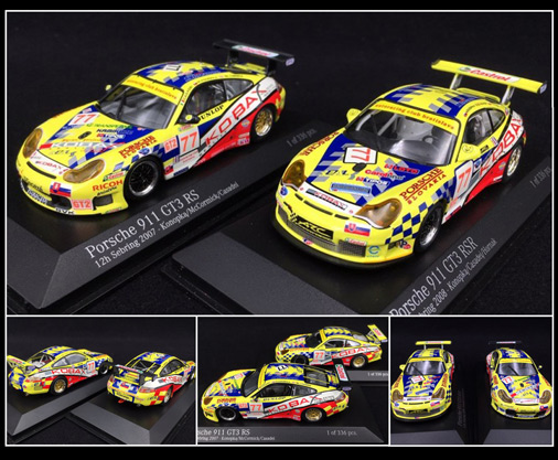 Porsche 996 GT3 Club Bratislava n°77 - 12h Sebring 2008 RS n°77 12h Sebring 2007 + RSR n°77 12h Sebring 2008 1/43 - Minichamps 400076977 + 400086977 Edition limitée - 336 exemplaires