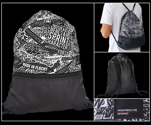 Sac à dos léger Porsche Motorsport Fermeture par cordelettes - 1 grande poche zippée devant - Matière 100% polyester Couleur Noir / Blanc - Dimensions 44 x 35 cm - Capacité 11 L - Poids 0,125 kg Porsche WAP1600010RMSF 24,95 € TTC / Incl. Taxes