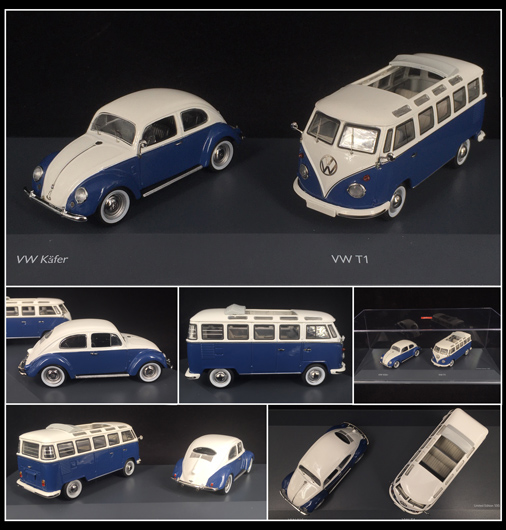 Set VW Coccinelle / VW Combi T1 Samba Blanc / Bleu 1/43 - Schuco 450269300 Edition limitée - 500 exemplaires 89,95 € TTC / Incl. Taxes
