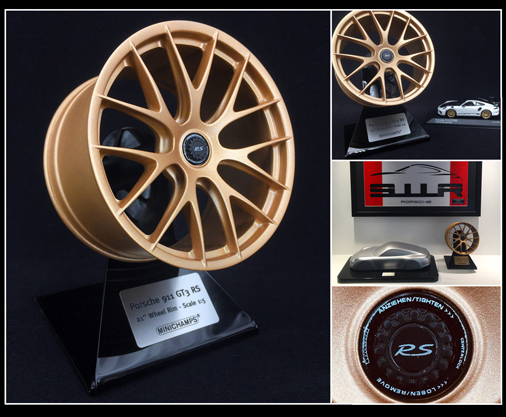 Jante Porsche 911 GT3 RS 2020 Modèle Satin Aurum - Couleur Or - Echelle 1/5 Avec boîte cadeau et support Modèle en résine - Minichamps 500601991 89,95 € TTC / Incl. Taxes